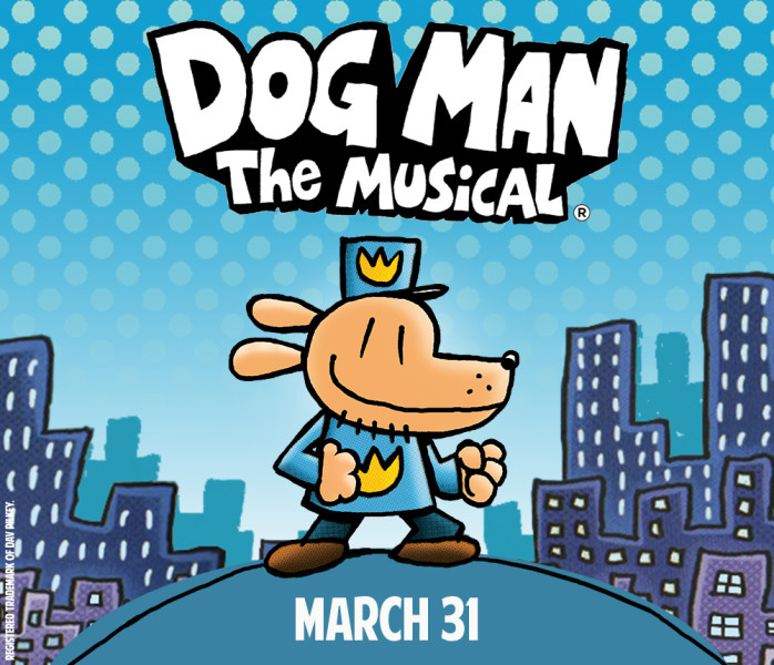 Based on the worldwide bestselling hit series by Dav Pilkey, Dog Man: The Musical is a hilarious and heartwarming production following the chronicles of Dog Man, who with the head of a dog and the body of a policeman, loves to fight crime and chew on the furniture. But while trying his best to be a good boy, can he save the city from Flippy the cyborg fish and his army of Beasty Buildings? Can he catch Petey, the world's most evil cat, who has cloned himself to exact revenge on the doggy do-gooder? And will George and Harold finish their show before lunchtime?? Find out in this epic musical adventure featuring the hilarity and heart of beloved characters from Dav Pilkey, the creator of Captain Underpants and Cat Kid Comic Club. Featuring an exciting book and lyrics by Kevin Del Aguila, music by Brad Alexander, and original direction and choreography by Jen Wineman. Recommended for ages 6+.