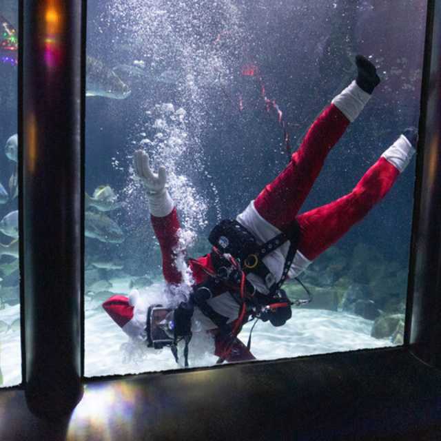 Get in the holiday spirit with an evening of family fun and holiday cheer! Enjoy seasonal surprises, scuba Santa, and a sparkling undersea winter wonderland at the Aquarium, decked with twinkling lights and holiday magic around every corner. Come dressed in your holiday best or cozy festive pajamas for a joyful and jolly night.