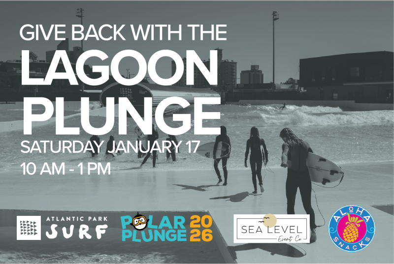 Participate in a practice plunge in the APS Lagoon, support Special Olympics athletes, or simply hang out beachside and enjoy fun activities throughout the Atlantic Park Surf beach and heated tent, complete with games and warm drinks by Aloha Snacks, Sea Level Event Co and in support of Waterman's Dream Charity.