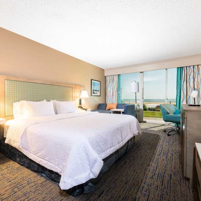 The Hampton Inn Virginia Beach Oceanfront North is perfectly located with 120 all ocean-view rooms. Wake up refreshed after an amazing night’s sleep on Hampton’s Cloud Nine® Upgrade Bedding, and enjoy the ocean sunrise while sipping coffee from your private beach balcony. Our free hot breakfast buffet saves you money and time so you can get on with your day. Here you get free WiFi, free local calls, and a microwave and refrigerator in every room. Relax in our newly remodeled waterfall pool and hot tub. Enjoy an exceptional dinner in our award-winning oceanfront restaurant, Timbuktu. At the end of the day, join the fun in our lounge and seasonal outdoor boardwalk café. Free breakfast, Free WiFi, and Hilton HHonors® Points & Miles®, while saving money, makes us the best choice!
