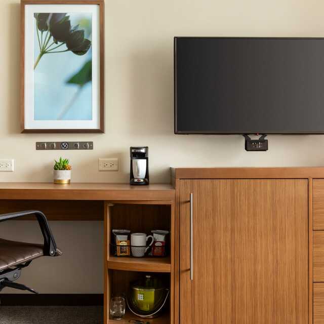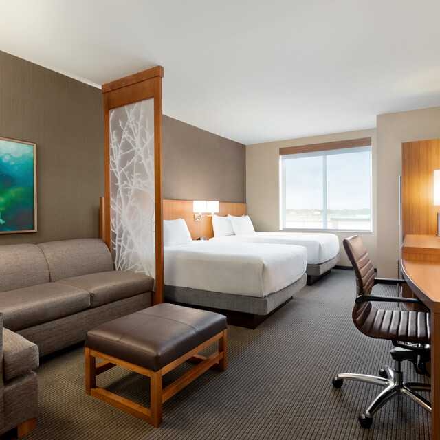 Known as a business hotel with a casual atmosphere. Spacious guestrooms with luxury bath and skin care amenities. Free Wi-Fi and remote printing everywhere in the hotel. Improved Elevated Breakfast complimentary to World of Hyatt Members or $11.00 per room. Indulge in some coffee or hit up the Cocktails Bar. 24/7 Gallery menu and market offers a wide selection of appetizers, soups, salads, sandwiches, sweets at any time of the night or day. Forget something? Hyatt Place also has nail polish, a universal cell phone charger, toothpaste, and plenty more that you can purchase, borrow, or simply enjoy at no expense.