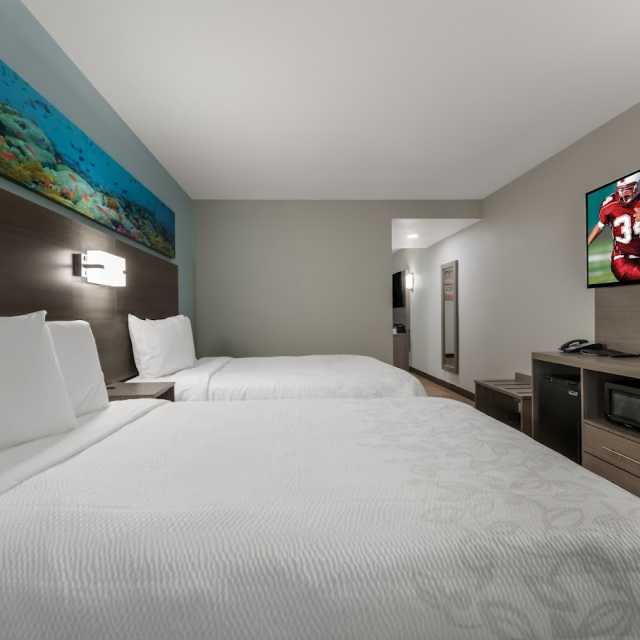 The Red Roof Plus and Suites Seaside hotel is ideally located about one block from the Virginia Beach Boardwalk, a three-mile long boardwalk offering an array of restaurants, shops, festivals and live entertainment venues like Live! On Atlantic and the 24th Street Park. This Virginia Beach hotel is minutes from popular attractions like the Virginia Aquarium & Marine Science Center, the Verizon Wireless Virginia Beach Amphitheatre, and Ocean Breeze Waterpark.