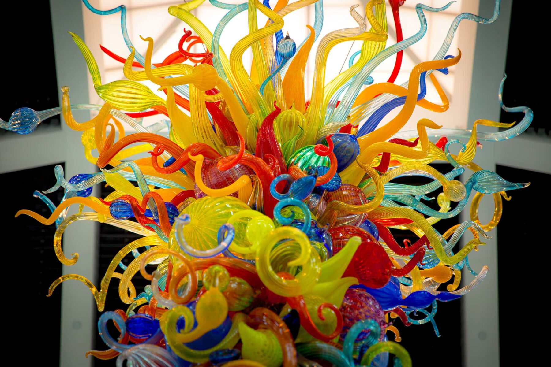 Translating to “1,000 Colors,” the Virginia Museum of Contemporary Art’s Mille Colori certainly lives up to its name. This breathtaking 14-foot glass chandelier by renowned artist, Dale Chihuly, is made up of 520 separate blown-glass pieces and hangs as a permanent fixture in the sunlit Rodriguez Pavilion, which was built specifically to showcase the modern masterwork.