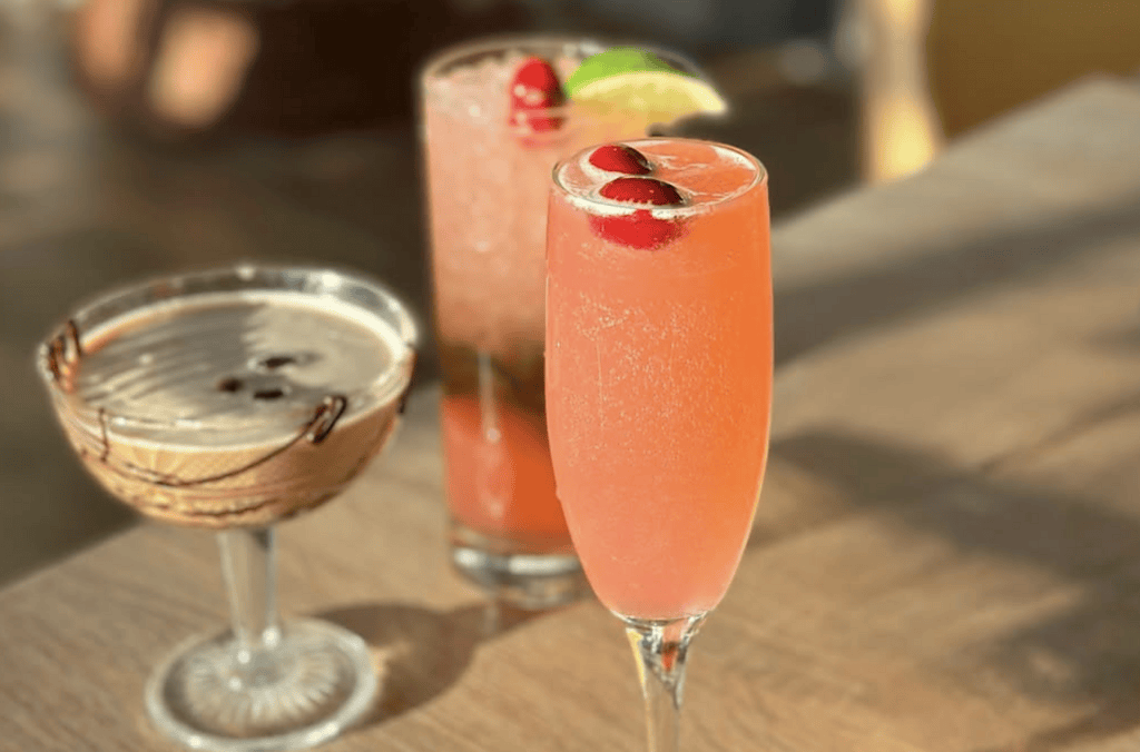 Tucked inside Anderson’s Garden Center in Pungo, Sage Kitchen serves up cheery holiday vibes with fresh ingredients and creative twists. Start with the Mistletoe Kiss, a flirtatious blend of vanilla vodka, cream of coconut and lemon-lime soda topped with house-grown thyme and pomegranate seeds. In the mood for something bubbly? Served all day, their Grinch Mimosa, made with prosecco, blue curaçao and fresh pineapple juice, brings a bright pop of holiday flair, while the Poinsettia Mimosa blends prosecco with cranberry and pineapple juices for a sparkling, seasonal cocktail.