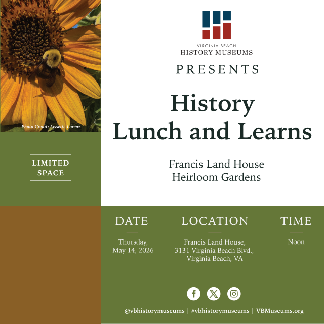 The history of the gardens of Francis Land House has been one of continual change and development. Come with us as we explore the transformation from a 19th century plantation landscape into a modern, seven-acre historical, educational, and organic gardening site managed by the Virginia Beach Master Gardeners.