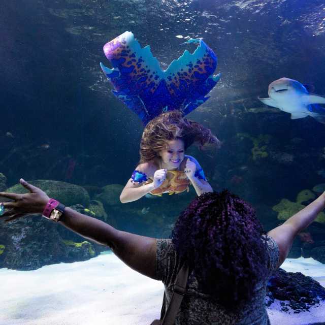 For an exclusive look at how mermaid magic comes to life, guests can book a behind-the-scenes experience to meet and interact with the diving mermaids privately after their swim. Admission to the Mermaids event and the behind-the-scenes experience is $75. Guests must be at least 8 years old and 48" tall to attend the behind-the-scenes tour.