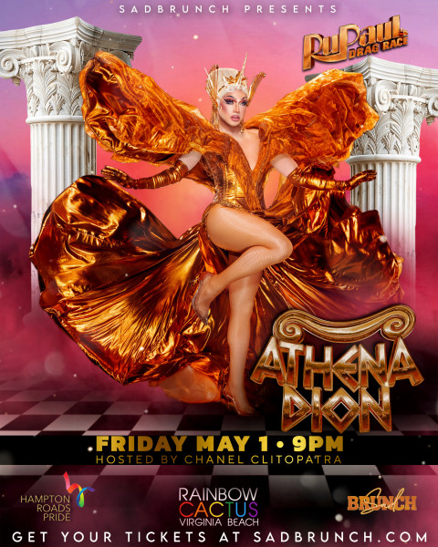 ATHENA DION from RuPaul's Drag Race SEASON 18 is storming The Rainbow Cactus on Friday, May 1st in a night of DRAG EXCELLENCE! Hosted by none other than Chanel with performances by LEGACY cactus queens Mercedes Douglas and Jasmine Saville! PLUS, the DANCING BEAN of BALTIMORE Sapphire Dupree makes her debut! DJ Airrick bringing the hottest beats all night long! OPA!!!