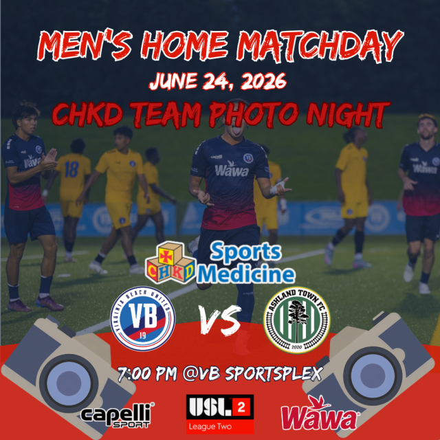 VB United hosts Ashland Town FC on June 24 for CHKD Team Photo Night, a fun and memorable experience for fans of all ages. This exciting evening combines competitive soccer with a unique opportunity to connect with the team and capture lasting memories. With strong action on the field and a community-focused experience off it, it's a perfect night for families, teams, and supporters to enjoy VB United soccer.