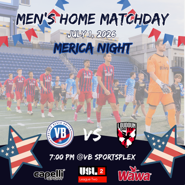 VB United returns home on July 1 for a patriotic 'Merica Night matchup against Loudoun United at the VB Sportsplex. With a festive, red-white-and-blue atmosphere, fans can celebrate summer and show their American pride while enjoying high-level soccer. The team will look to defend home turf in front of a lively crowd, making this a perfect night for families, friends, and fans to come together and enjoy the game.