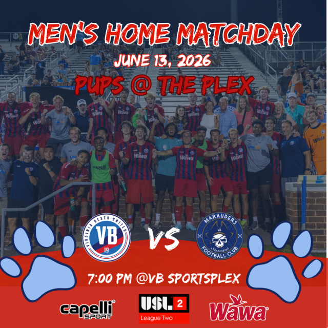 VB United welcomes fans—and their four-legged friends—on June 13 for Pups @ the Plex as they take on Marauders Football Club. This fan-favorite event creates a relaxed and fun environment where supporters can enjoy the match alongside their dogs. With great soccer on the field and a unique experience in the stands, it's a perfect night for pet lovers and VB United fans alike.