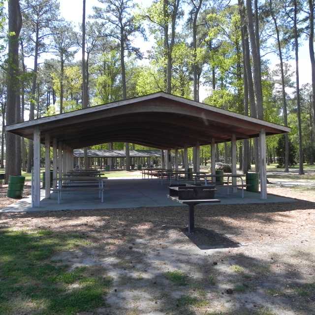 - Three Large Group Picnic Shelters with Charcoal Grills