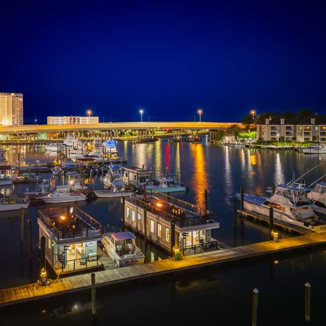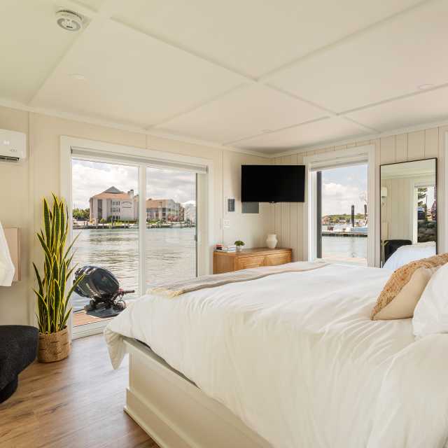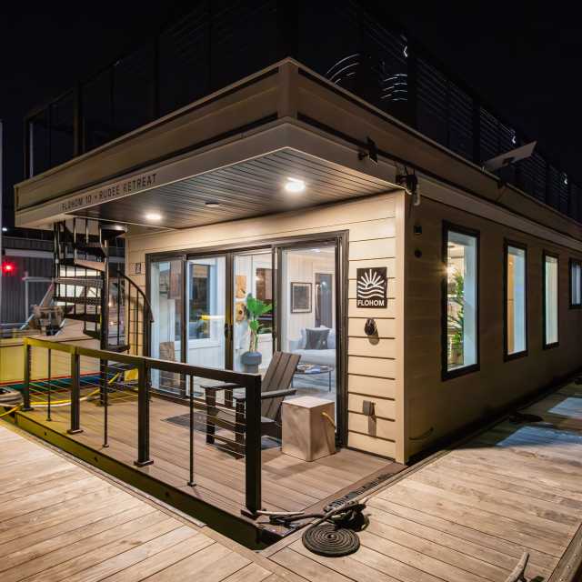 Welcome aboard FLOHOM 10—a modern coastal-inspired luxury houseboat designed to accommodate up to four guests comfortably. Nestled at the iconic Virginia Beach Fishing Center in historic Rudee Inlet, the celebrated birthplace of East Coast billfishing, this floating haven offers unparalleled panoramic views, stylish interiors, and a private rooftop deck perfect for capturing breathtaking sunrises and sunsets.