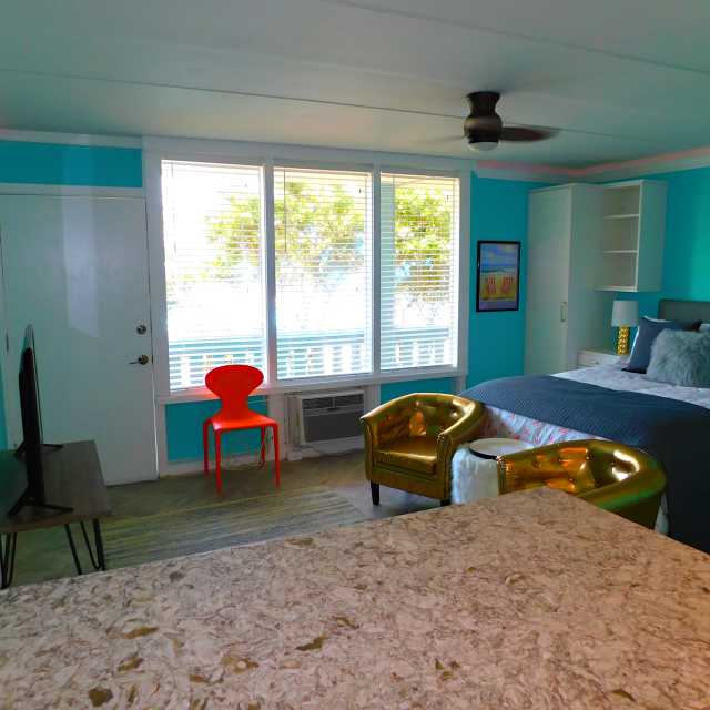 OceanSide Studio Efficiency. Newly updated First Floor Condo. Queen Bed. 1 Bath, A/C, Kitchen, Microwave, Flat Screen TV, Wi-Fi. Outdoor Pool, Coin Operated Laundry on Premises, 1 Parking Space. Located at 40th and Atlantic Avenue just at the tip of the Virginia Beach Boardwalk. Easy Beach access. Relax at the pool or enjoy the large grass courtyard overlooking the Atlantic Ocean. Close to restaurants and shops. Enjoy the entertainment along the three miles of the Boardwalk and stop for a bite at one of the many places to eat, rent a bike or gondola or catch a ride on a Trolley along Atlantic Avenue.