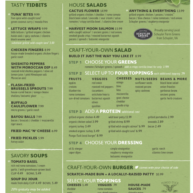 Everything we serve is made from scratch and incorporates the freshest local ingredients. No freezers here, friends. Foodies and all will love our menu.