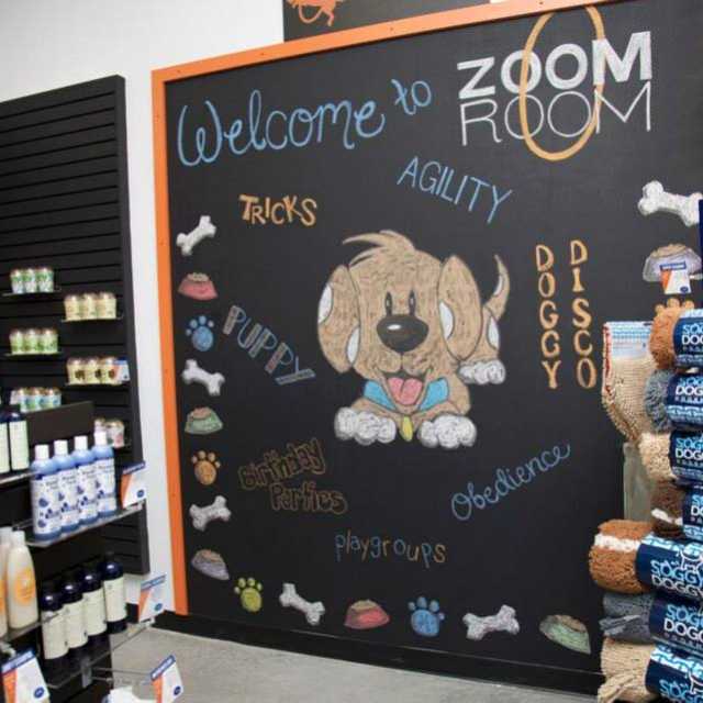 Welcome to the Zoom Room. Here you’ll find a fun, sporty place to play with your dog. Classes to develop communication and deepen your enjoyment of your dog. The perfect place to host a dog party. An indoor dog park – your own private playground whatever the weather. A positive, social atmosphere to meet like-minded dog lovers. A handpicked assortment of the very best dog gear.You can’t drop off your dog. We want you both to come, stay, learn, play.Our goal is to fill the world with happy, tired dogs enjoying an exceptional quality of life as loving companions.The Zoom Room is climate-controlled, ADA-compliant, eco-friendly in both building design and product offerings, and available for group classes, private training, playgroups and parties.